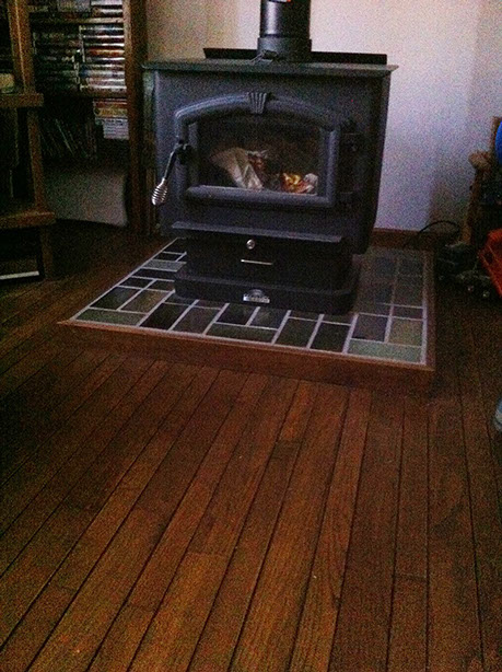 Stove hearth and hardwood floor