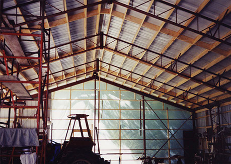 Metal storage building - inside truss and purlin framing