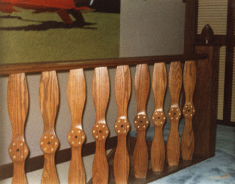 Airplane nosecone newel and propellor ballister design and execution at airport hangar