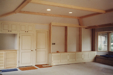 Tray ceiling, beams and cabinetry